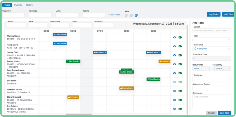 - Timeline View supports shift start, prioritization, and care coordination
